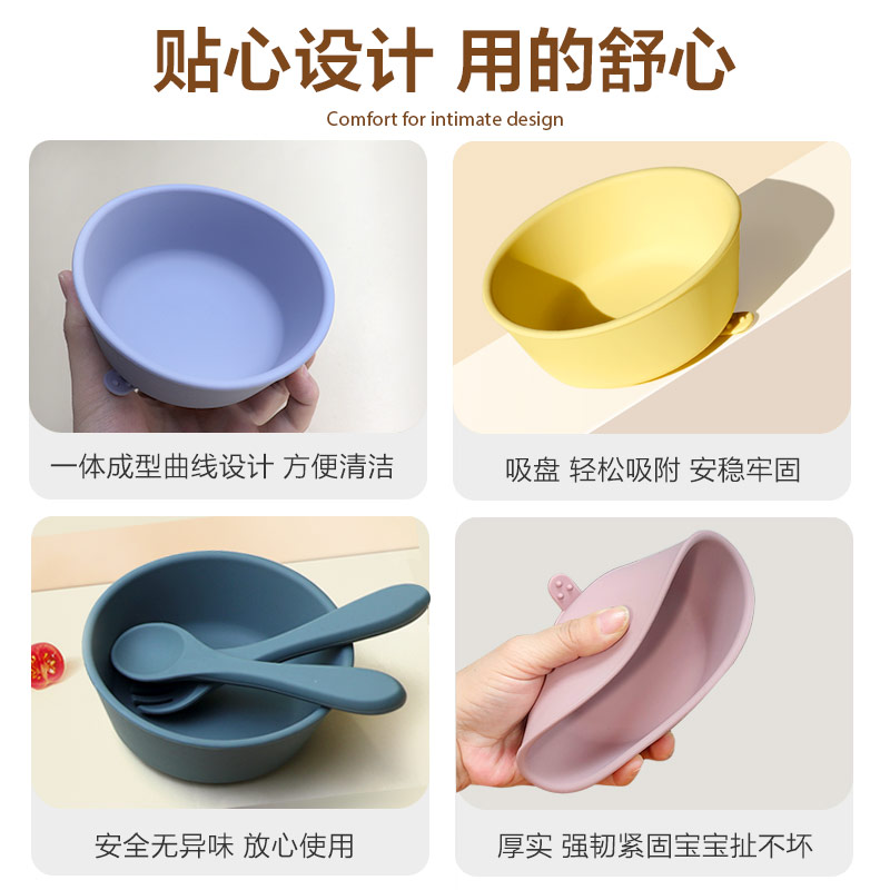 新款兒童硅膠碗 寶寶輔食吸盤(pán)碗 母嬰兒童餐具硅膠餐盤(pán)