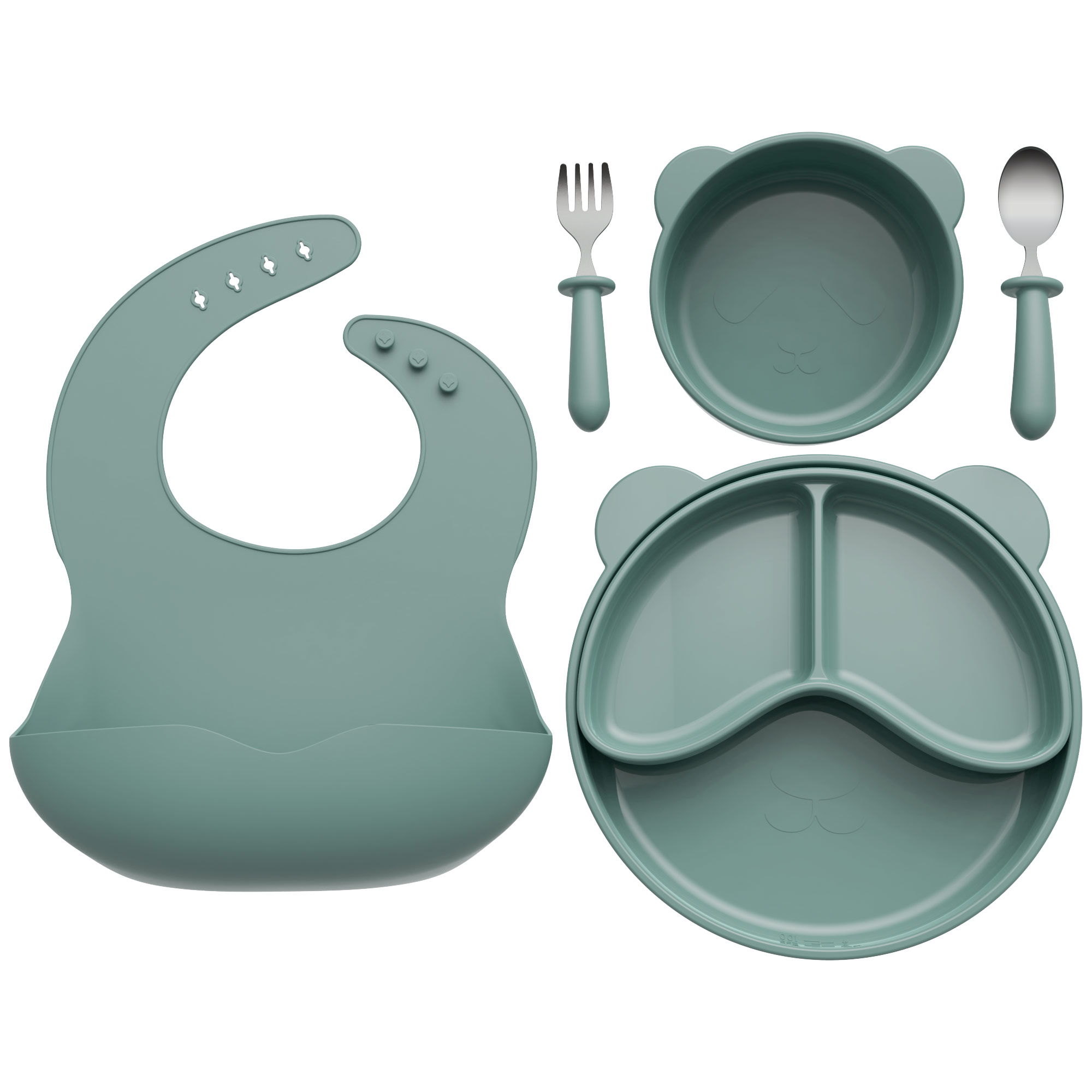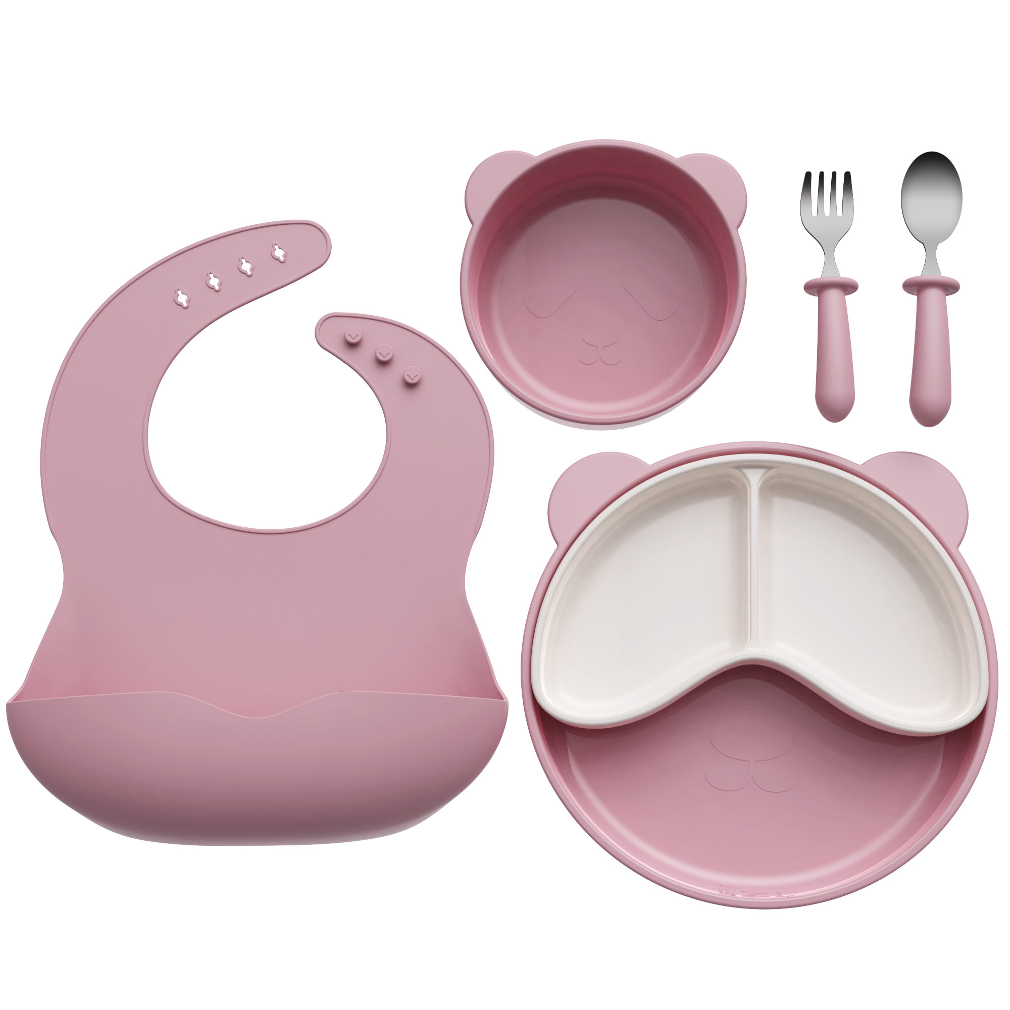 6件套分隔盤母嬰喂食套裝母嬰分格嬰兒硅膠餐盤